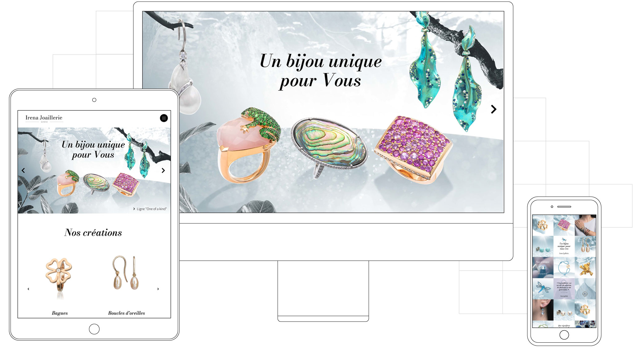 Irena Joaillerie est une toute nouvelle marque de bijoux entièrement fabriqués en Suisse pour laquelle j’ai créé un shop en ligne.