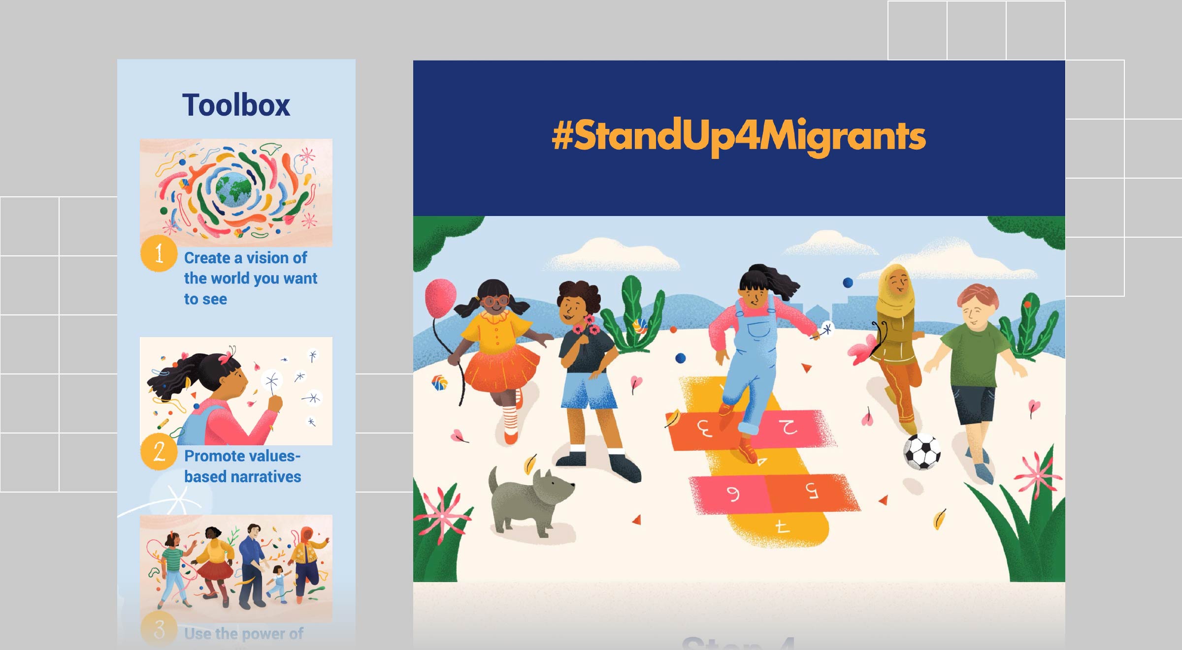 J’ai eu le plaisir de travailler sur plusieurs campagnes de l’OHCHR (Haut-Commissariat aux droits de l’homme). Le site #StandUp4Migrants est l’une d’entre elles.