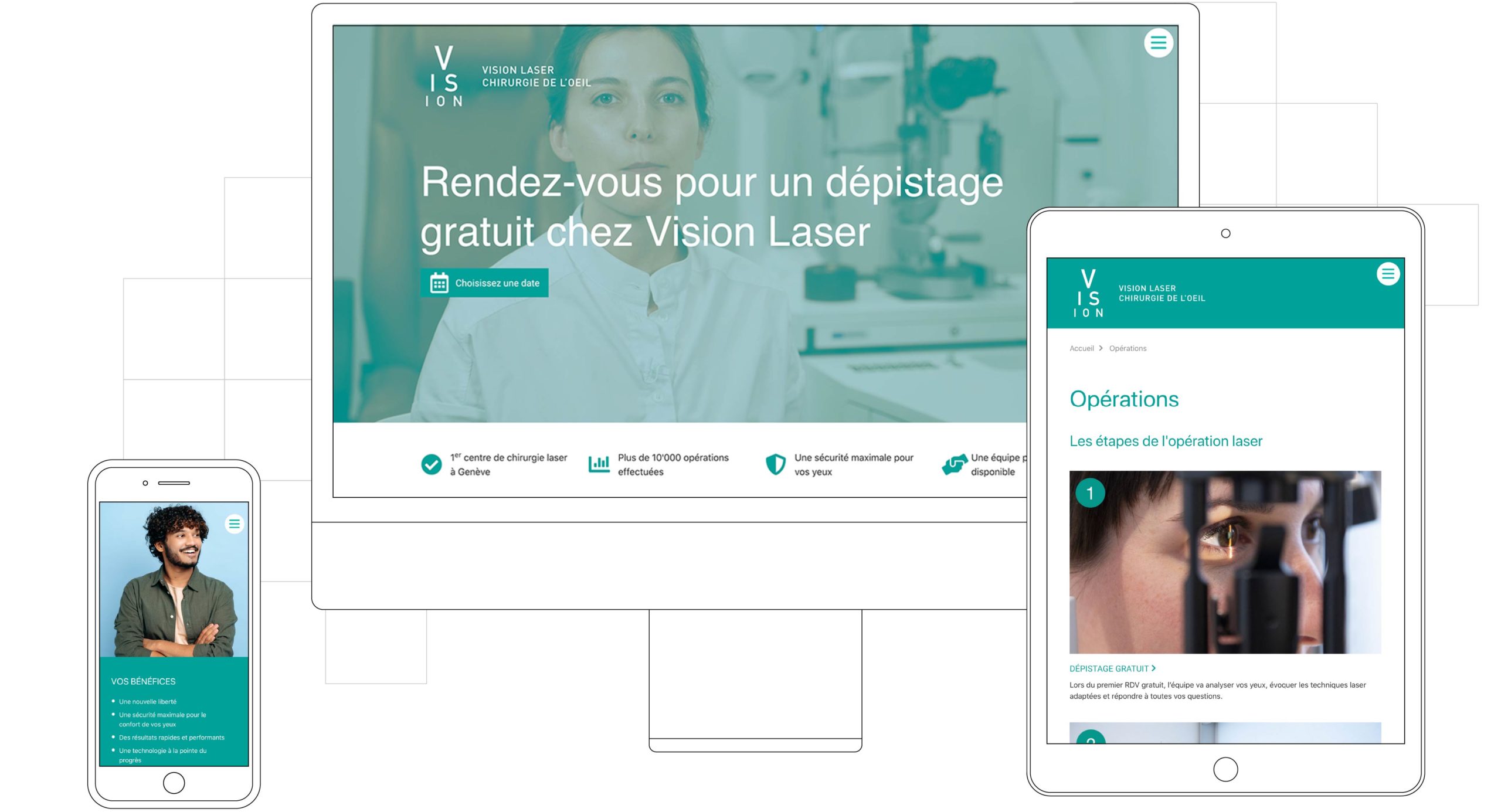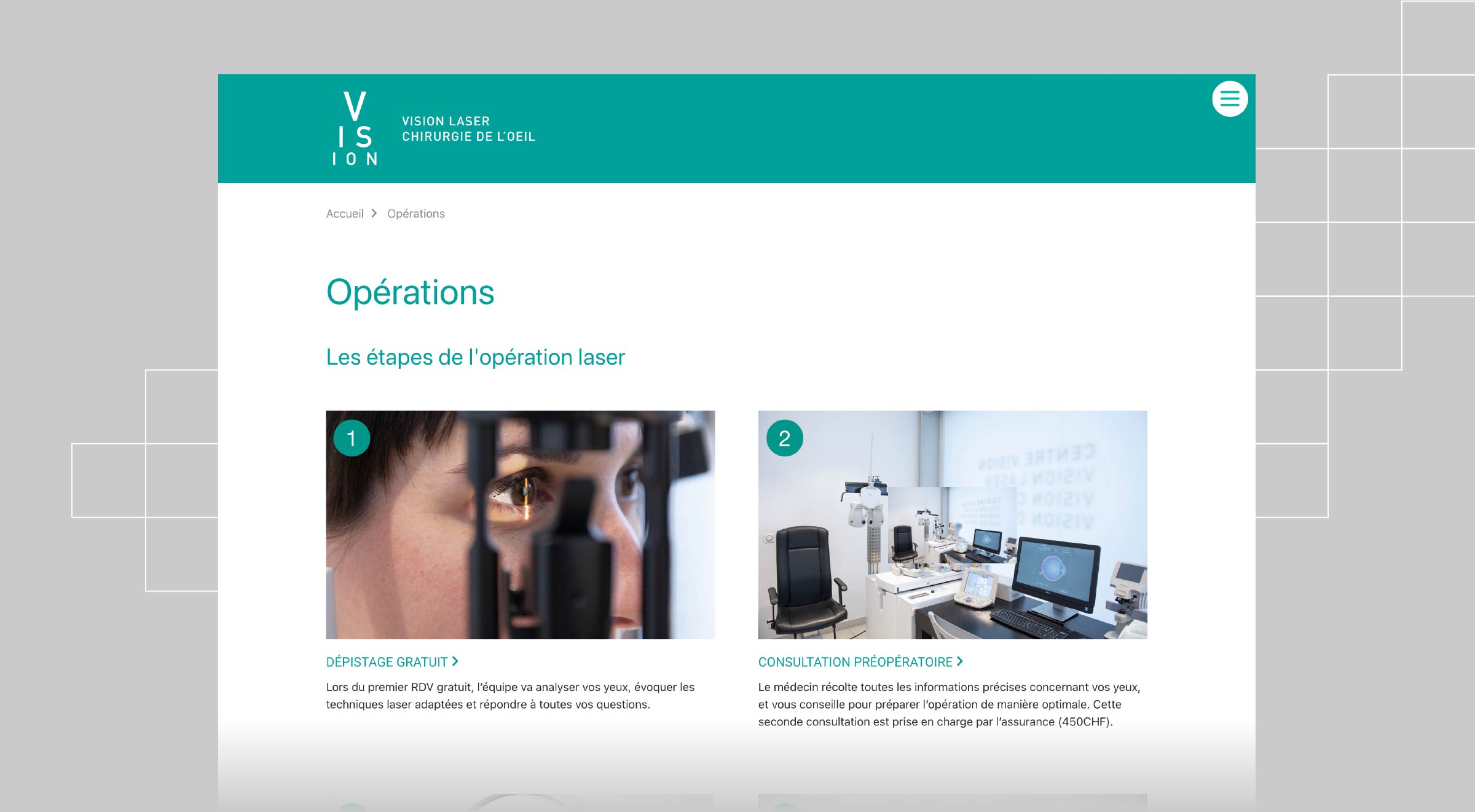 Si la chirurgie laser a connu un grand boom ces dernières années, cela reste un grand pas à franchir pour la plupart de ceux qui souhaitent se passer de lunettes. Il est essentiel pour les clients potentiels d’être rassurés et qu’ils puissent trouver facilement les réponses à leurs questions. La refonte de ce site a été l’occasion de réorganiser les contenus pour répondre à ces besoins, de même que de moderniser le design. Les chiffres clés, le déroulement de l’opération, les questions fréquentes, les témoignages, les vidéos et les profils de l’équipe convergent dans ce sens.